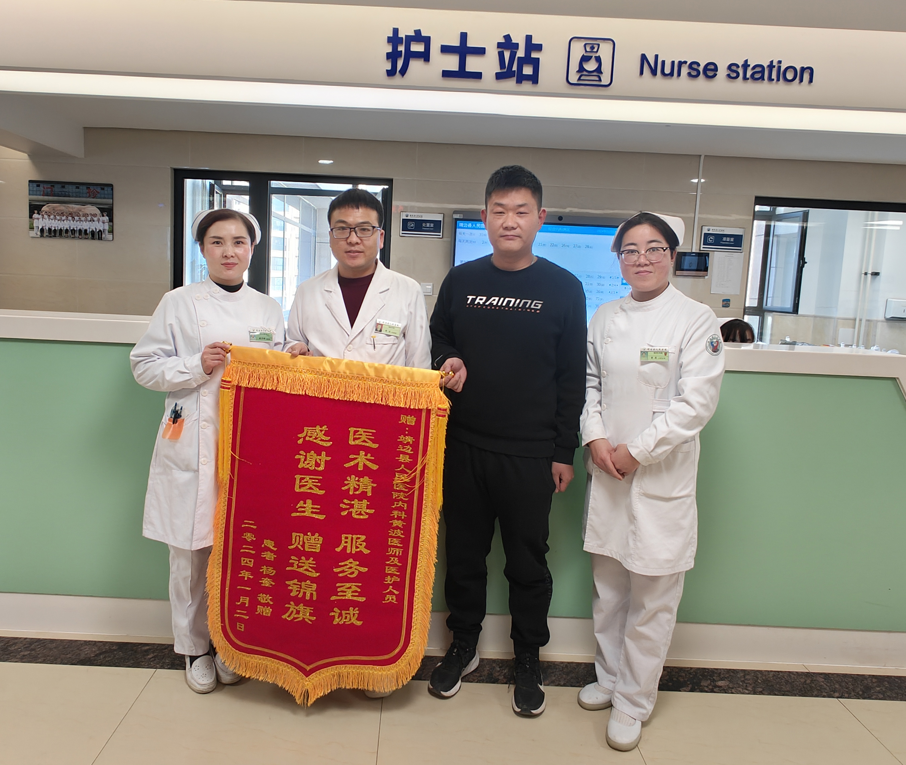 2024年1月2日患者为综合内科医护人员送来感谢锦旗