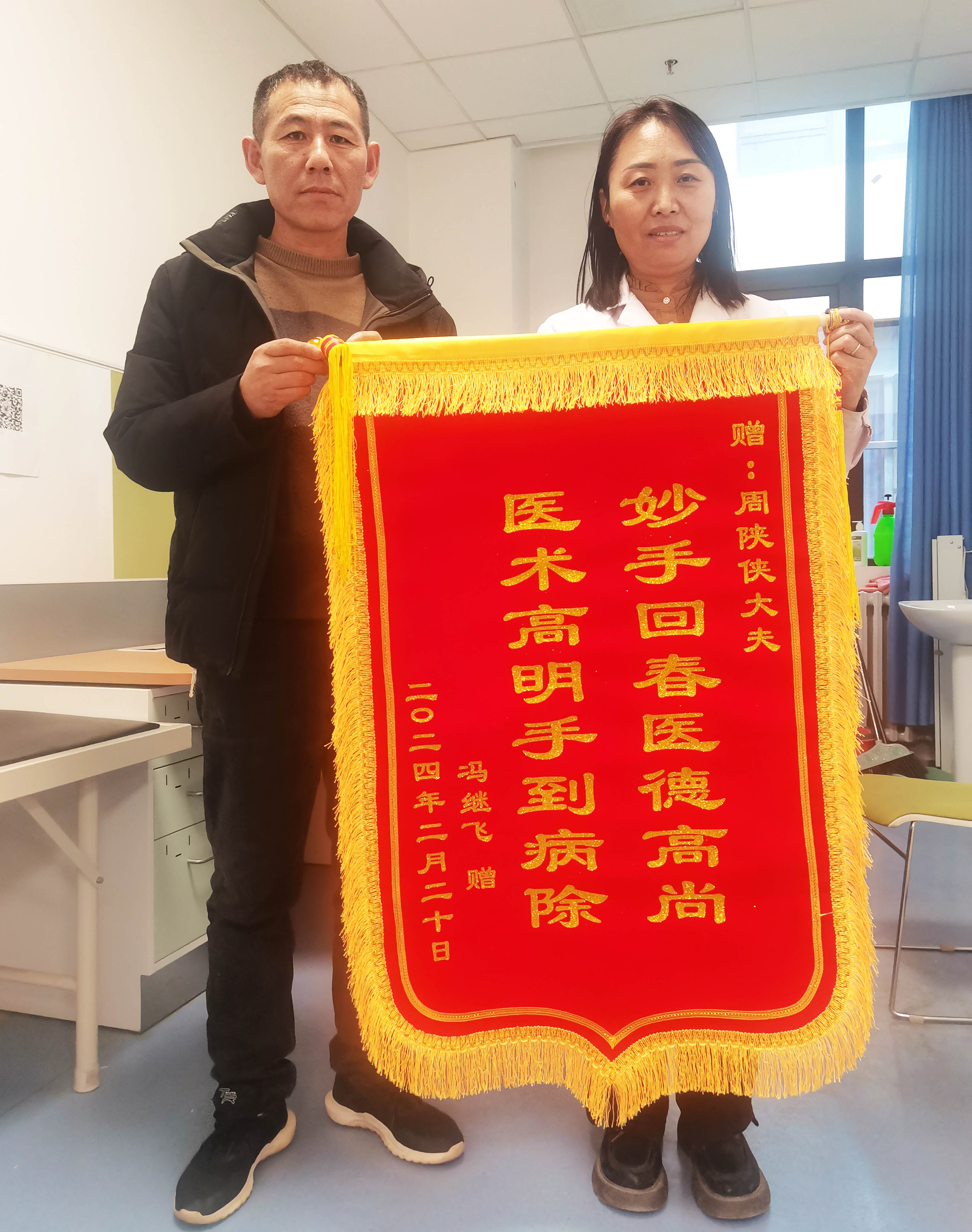 2024年2月20日患者为综合内科医师周陕侠送来感谢锦旗