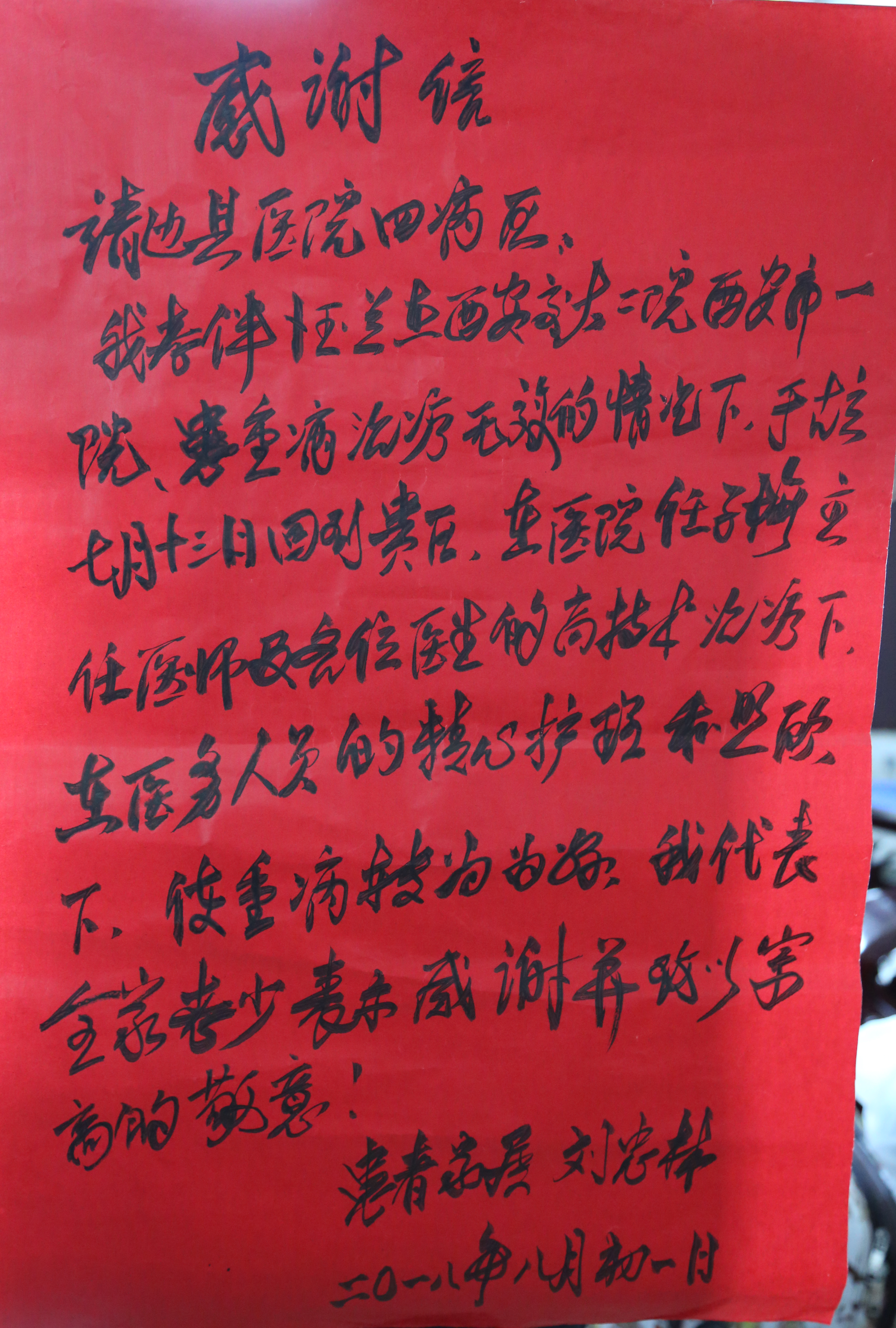 2018年9月11日患者为综合内科医护人员送来感谢信
