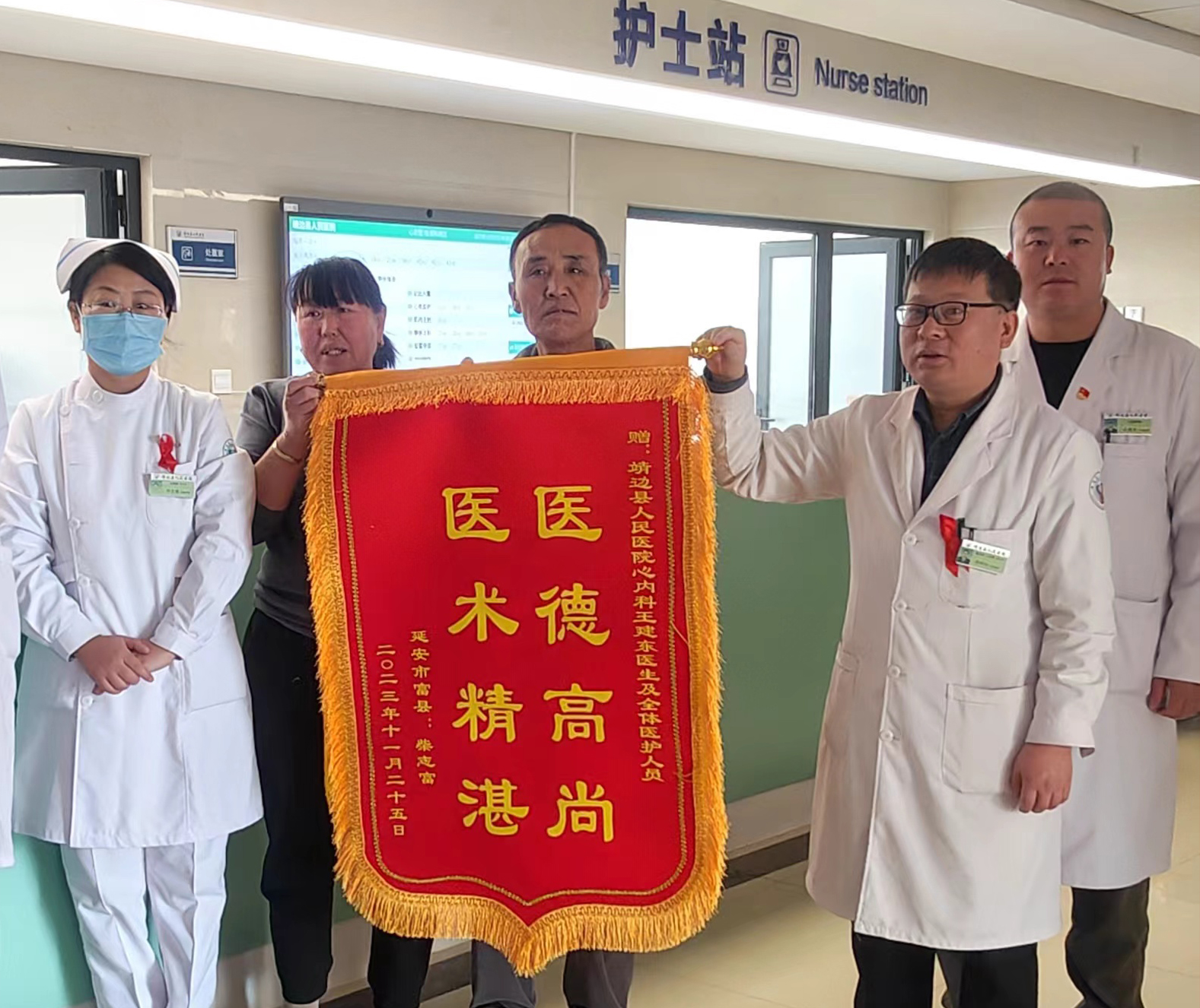 2023年11月患者家属为心内科医师王建东及全体医护人员送来感谢锦旗