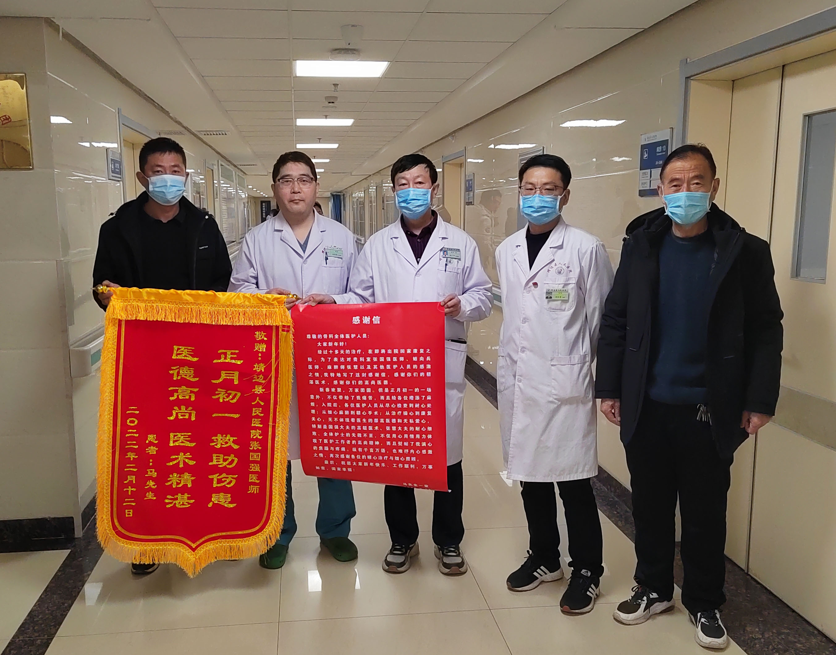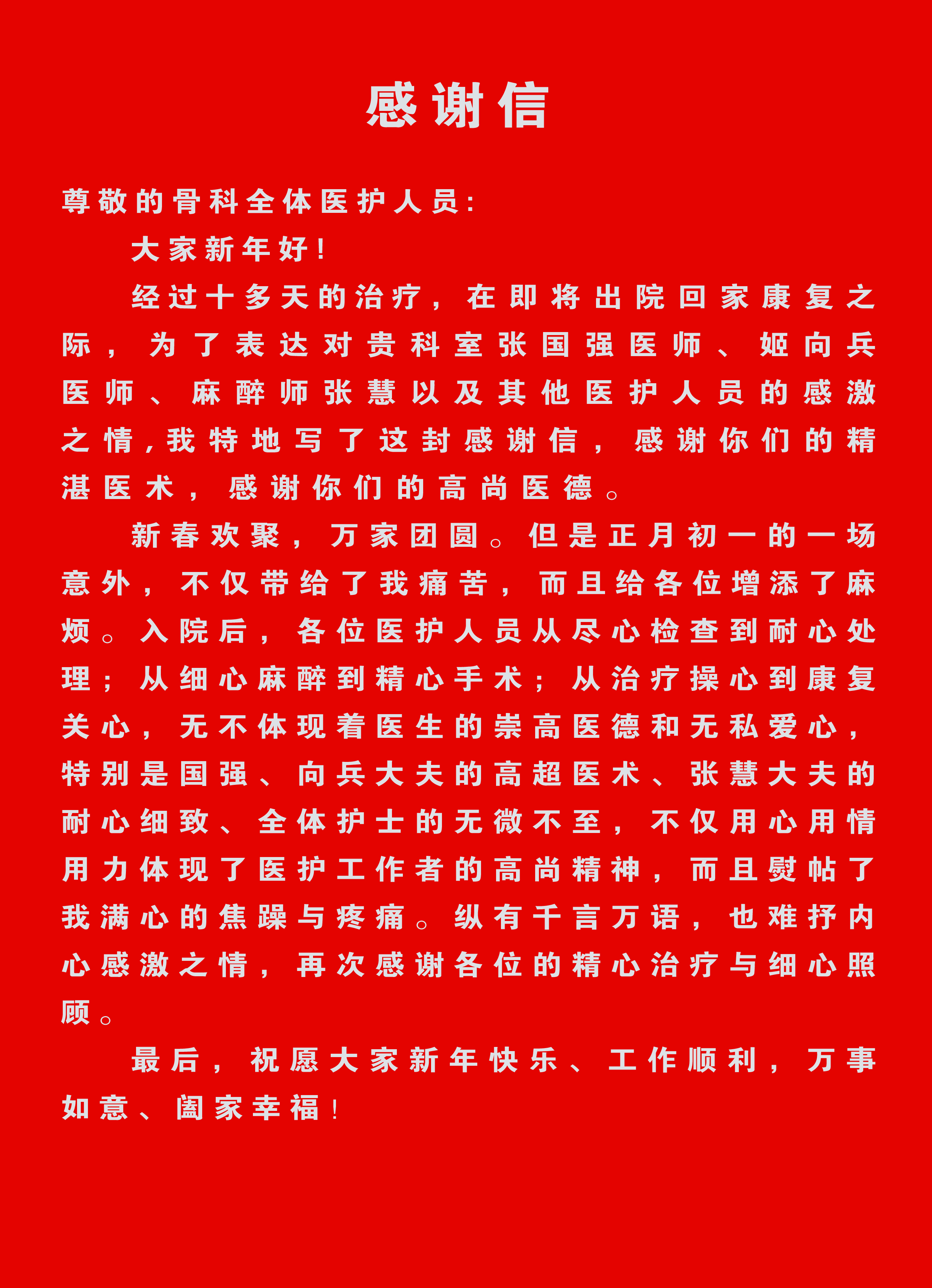 2022年1月患者为骨科张国强医师送来感谢锦旗及感谢信