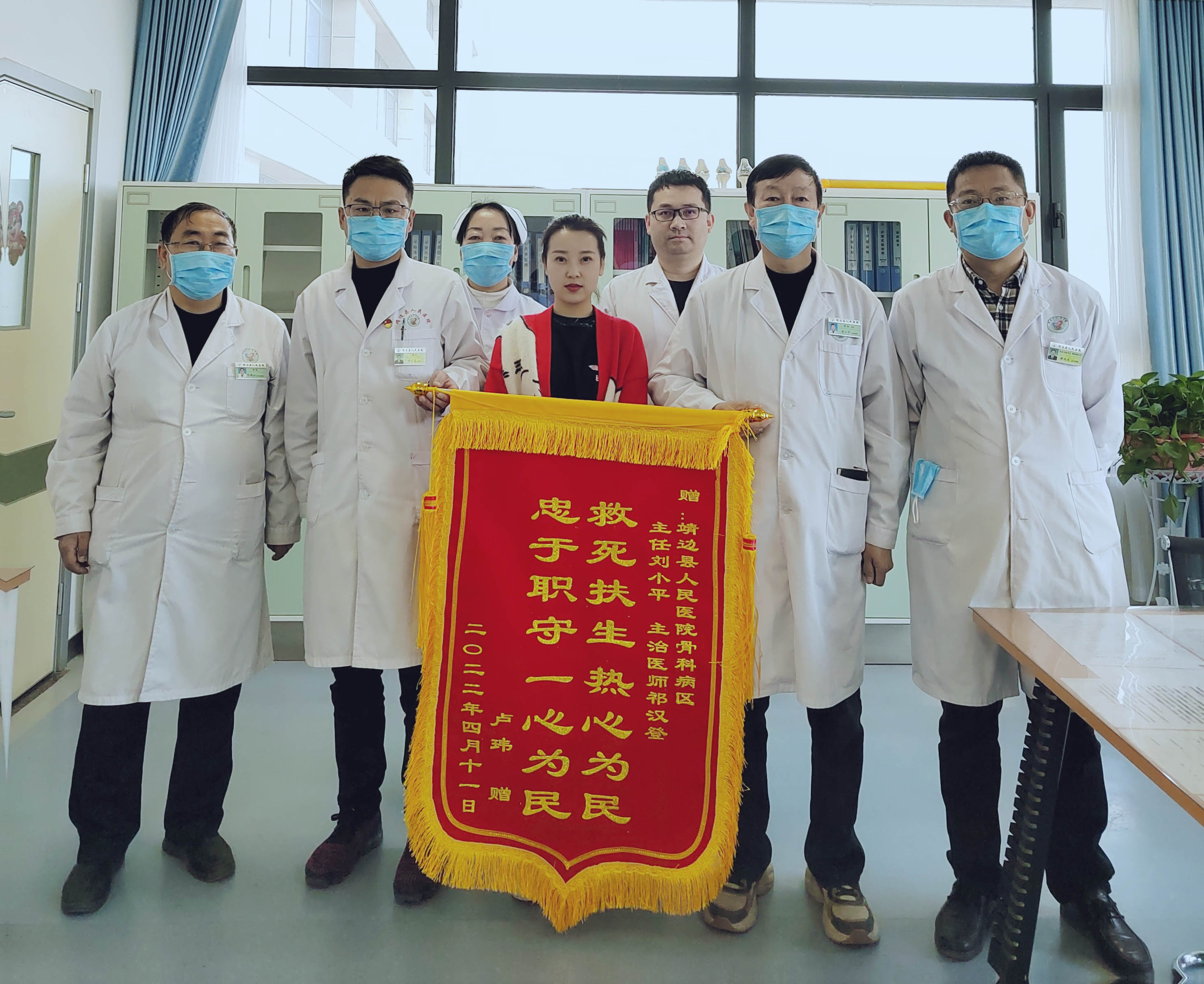 2022年4月患者为骨科主任刘小平及主治医师祁汉登送来感谢锦旗