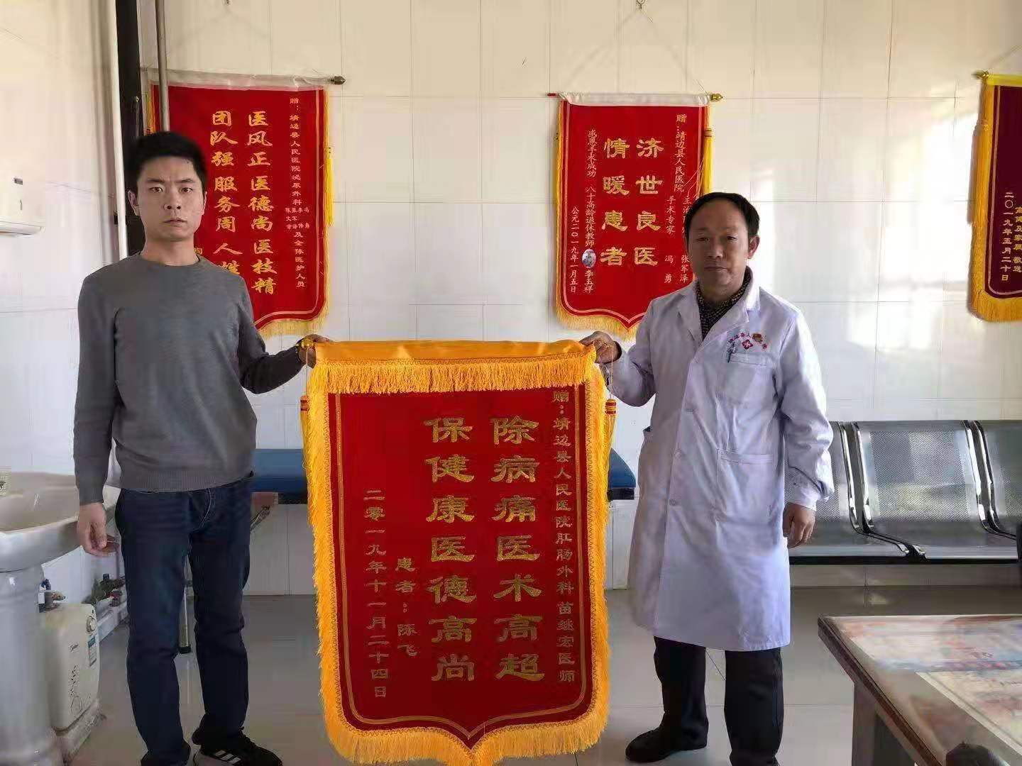 2019年11月患者为肛肠科医生苗继龙送来感谢锦旗