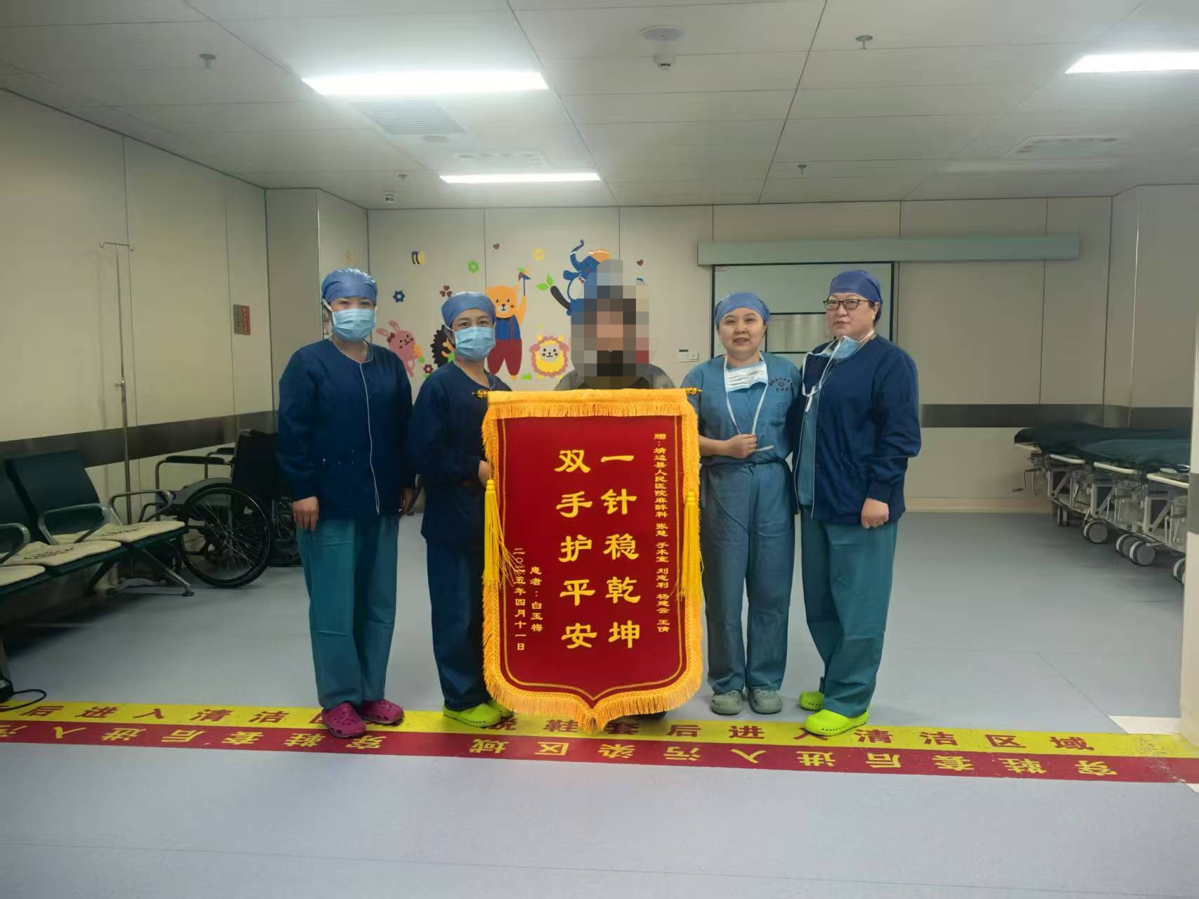 2025年4月11日患者家属为手术麻醉科医务人员送来感谢锦旗