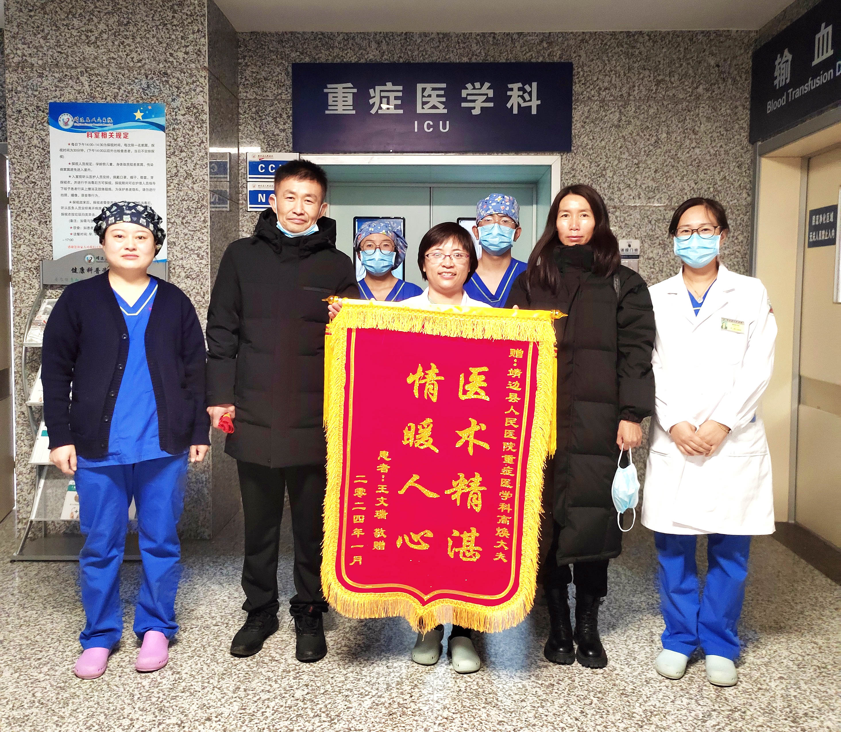 2024年1月24日患者家属为重症医学科医护人员送来感谢锦旗