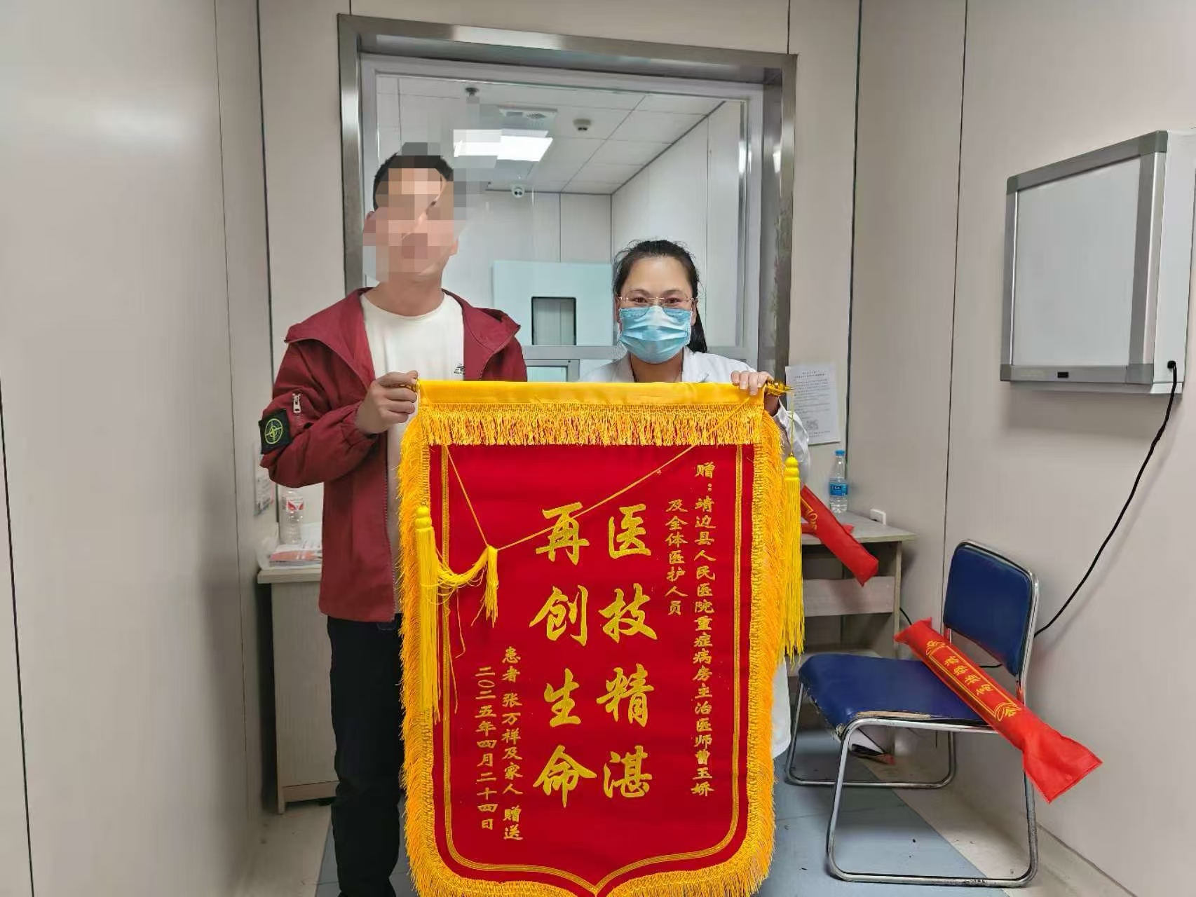 2025年4月25日患者家属为重症医学科送来感谢锦旗