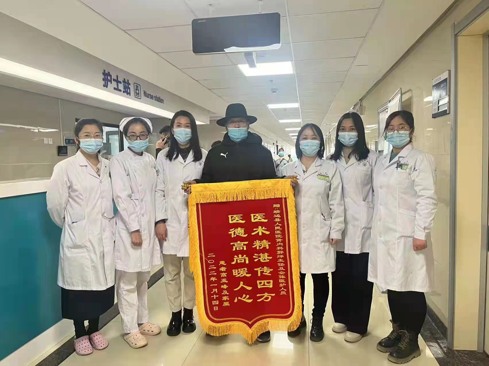 2022年1月患者及家属为肾内科郭烨主任及全体医护人员送来感谢锦旗
