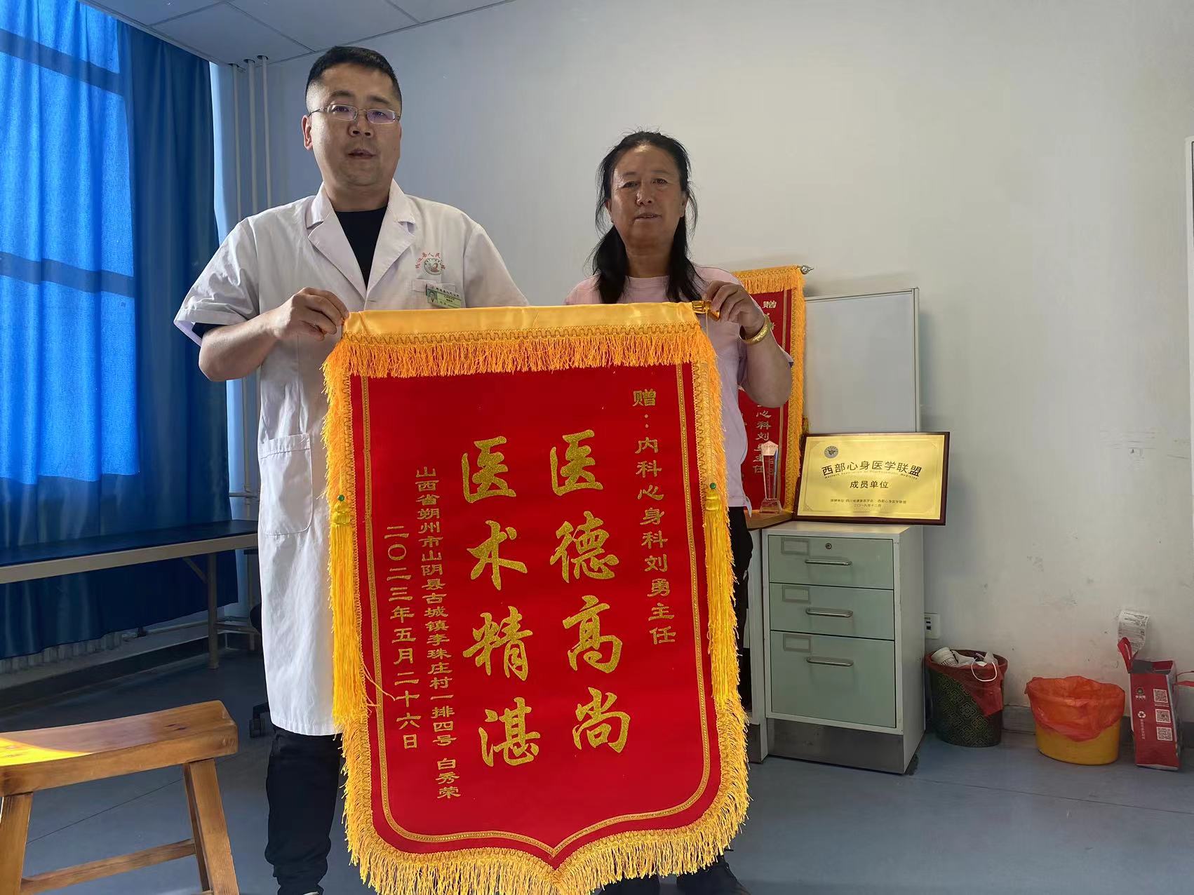 2023.8.2患者家属为心身科医生刘勇送来感谢锦旗