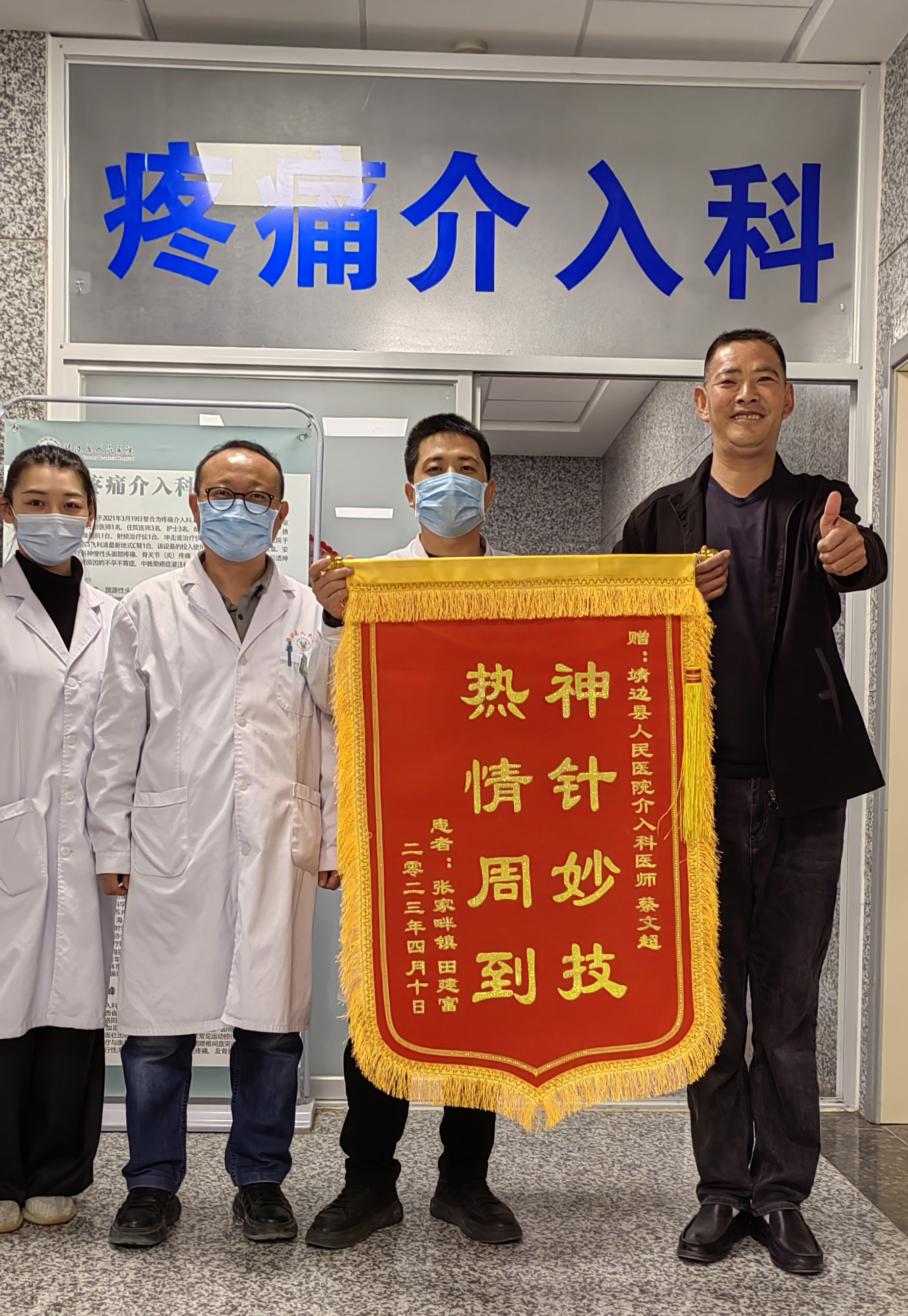 2023年四月患者为疼痛介入科蔡文超送来感谢锦旗