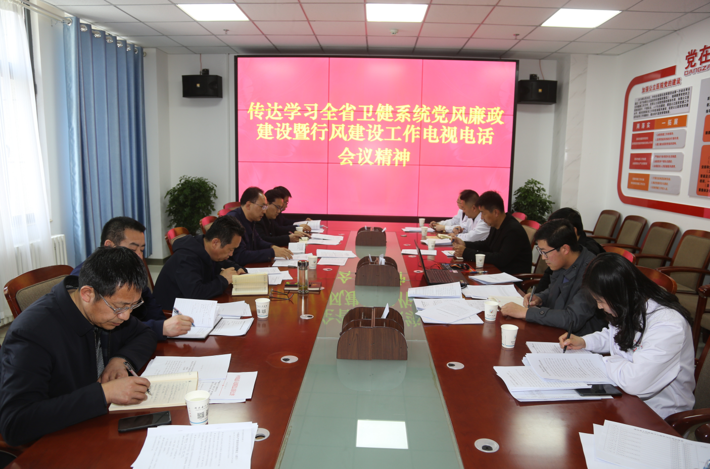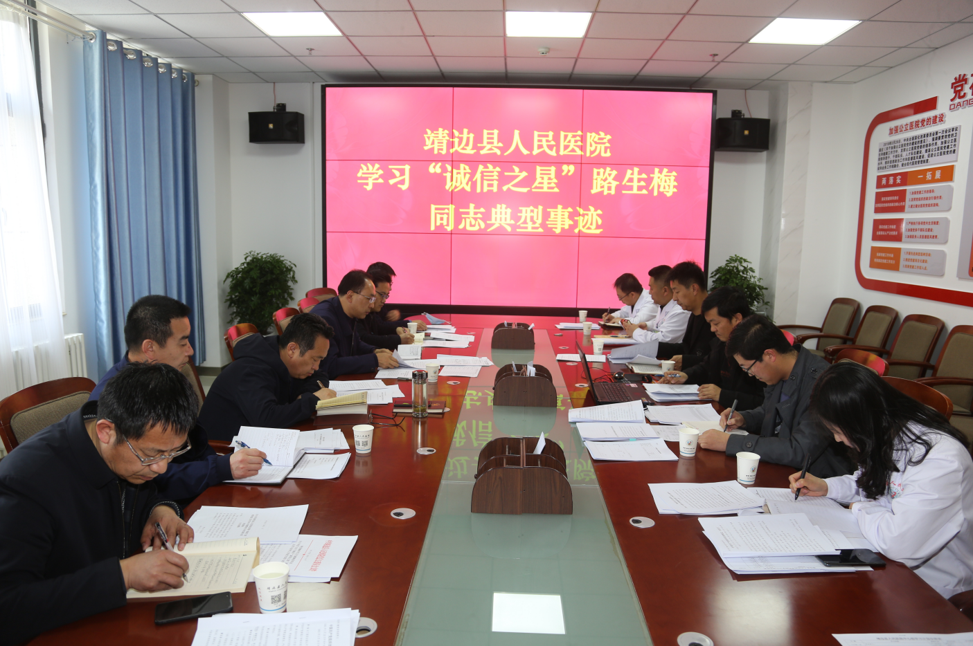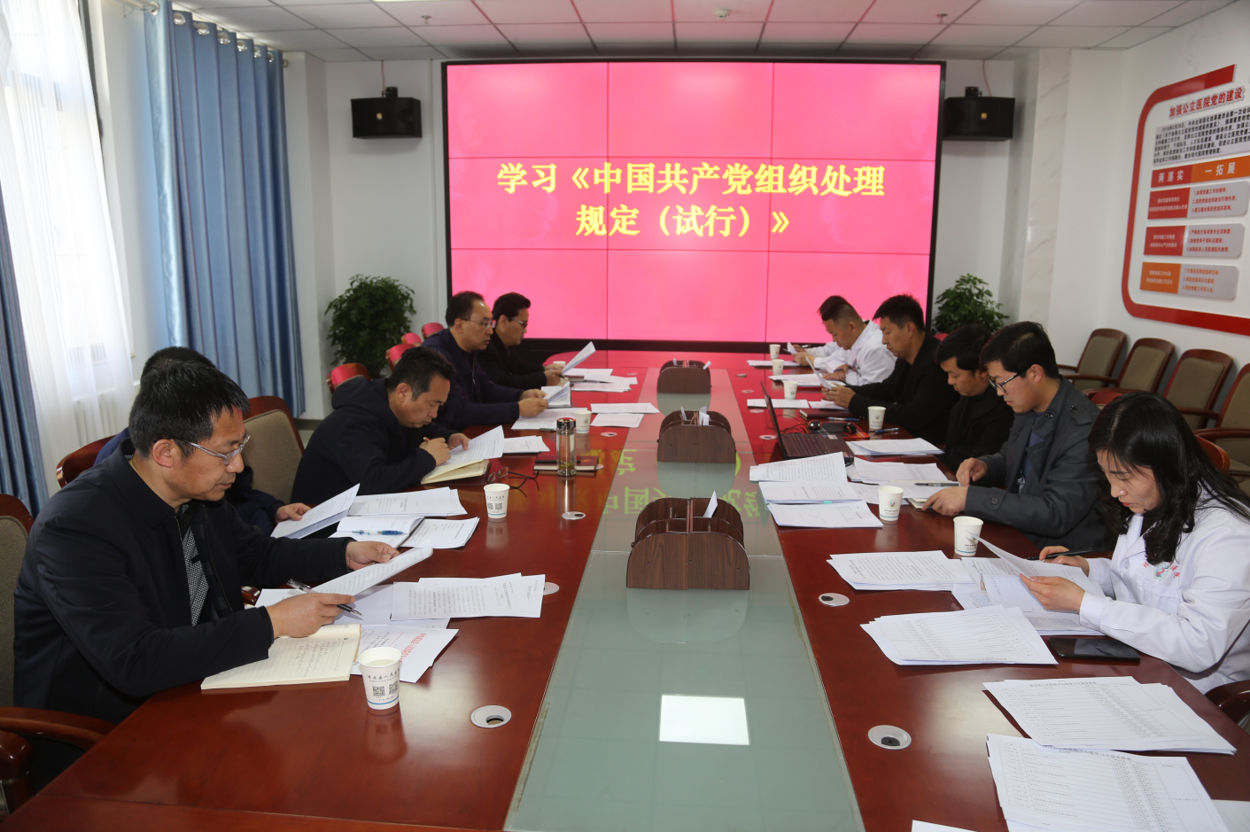 2021年4月14日,我院党总支委员会进行党课集中学习,会议由党总支书记、院长马枭今主持。马院长传达学习了《全省卫健系统党风廉政建设暨行风建设工作电视电话》会议精神,并组织学习了《中国共产党组织处理规定(试行)》、靖边县卫健局印发《关于加强干部职工管理改进工作作风专项整治行动实施方案》,在会上讨论制定了我院《加强干部职工管理改进工作作风专项整治行动实施方案》。