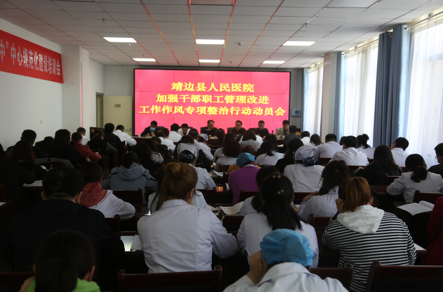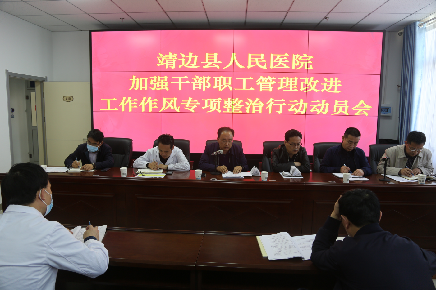 2021年4月27日,我院在行政楼四楼会议室召开了加强干部职工管理改进工作作风专项整治行动动员会,党总支委员、中层干部、全体党员参加会议。会上党总支副书记姬向兵组织学习了《靖边县人民医院加强干部职工管理改进工作作风专项整治行动实施方案》。