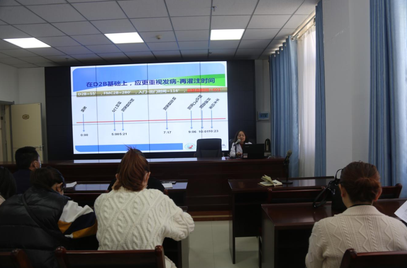 根据卒中防治中心建设工作需要,为保证卒中防治中心工作有序开展,由医务科组织,神经内科主任郭润芳、心血管内科主任郭永炜、副主任高四红分别以《急性缺血性脑卒中的识别及治疗》、《中国胸痛中心认证设计理念及建设意义》、《高危急性胸痛及ACS早期症状识别、治疗原则》三项内容对急救中心、CT室、心内科、神经内科、导管室等相关科室进行了专题培训。