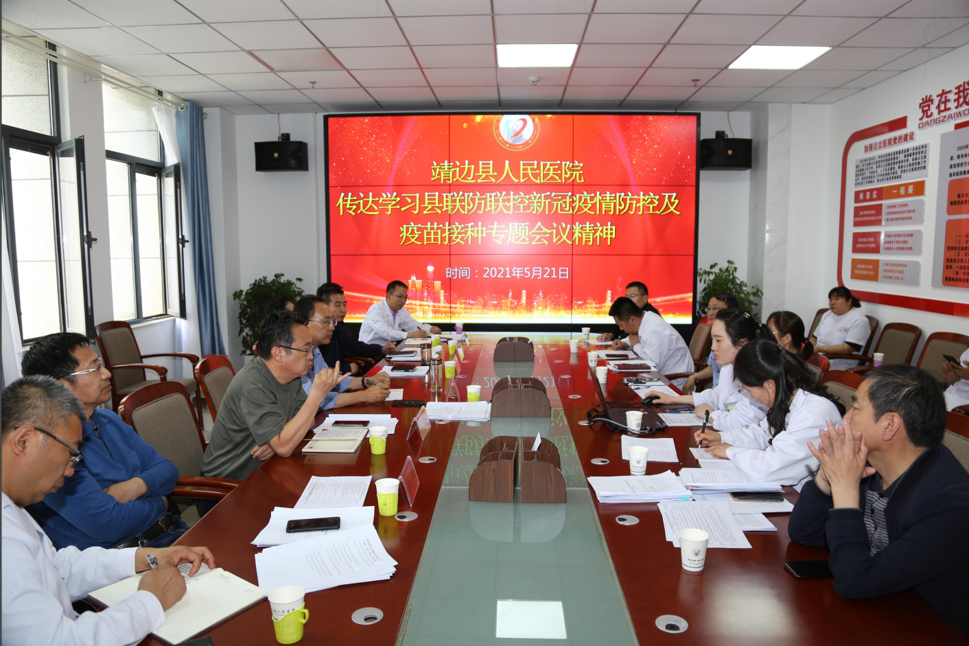 5月21日,我院在行政楼2楼会议室召开了新冠防控及疫苗接种专题会议,会议由党总支书记、院长马枭今主持,副院长刘朝曦、王雄、袁海军、党总支副书记姬向兵、工会主席冯勇及相关部门负责人参加会议。