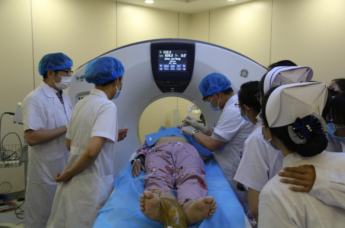 为了给患者制定合理的治疗方案,支援我院的省肿瘤医院专家和我院肿瘤科医生充分讨论后,经与家属沟通同意后,7月1日,成功为第一例患者进行了CT引导下经皮肺穿刺活检术。手术顺利,术后患者无明显并发症。截止7月14日,我院肿瘤科共为7例癌症患者进行了CT引导下经皮肺穿刺活检术。该项技术的顺利开展,有助于及时为肺内占位病人定性及基因检测,有助于病人早发现、早诊断、早治疗,能给患者提供精准的治疗方案。