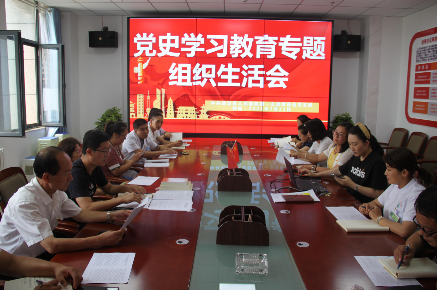 2021年7月22日,第一党支部在行政楼二楼会议室召开党史学习教育专题组织生活会,全体党员、积极分子参加会议,会议由支部书记郝世雄主持。在会前组织观看《理想照耀中国》。大家都被杜富国和他妹妹支援武汉抗疫的事迹所感动,很多同志情不自禁的流下眼泪。