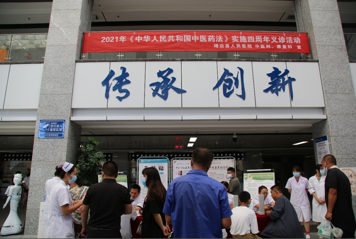 2021年是中华人民共和国中医药法实施四周年,为了更好的传播中医药文化,普及中医保健知识,7月14 日早上八点,我院中医科、康复科医护人员在门诊一楼大厅开展免费义诊活动。