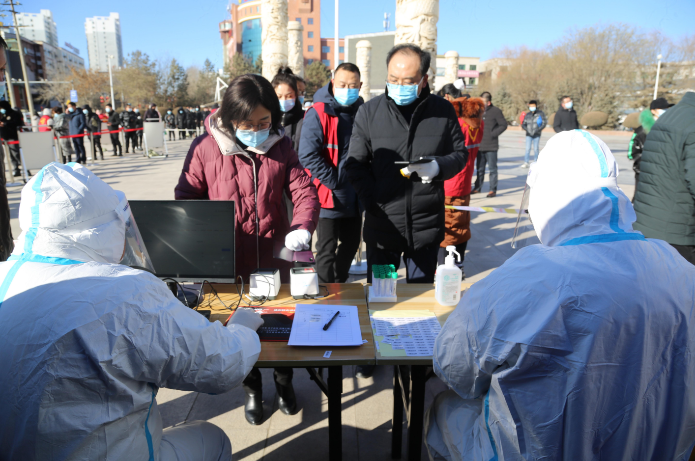 12月26日,全县新冠疫情全员核酸采样应急演练在统万路社区举行,县委副书记、代县长曹龙,副县长谢红静参加演练。