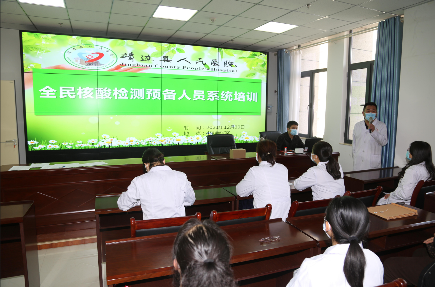 12月31日,由我院医务科、护理部组织全体医护技人员分为五个批次,在行政楼四楼会议室开展“全民核酸采集预备人员系统培训”。培训现场,信息科赵小龙以《榆林市全员核酸采集应急平台操作培训》为题进行授课,随后进行了核酸采集与穿脱隔离衣视频培训。