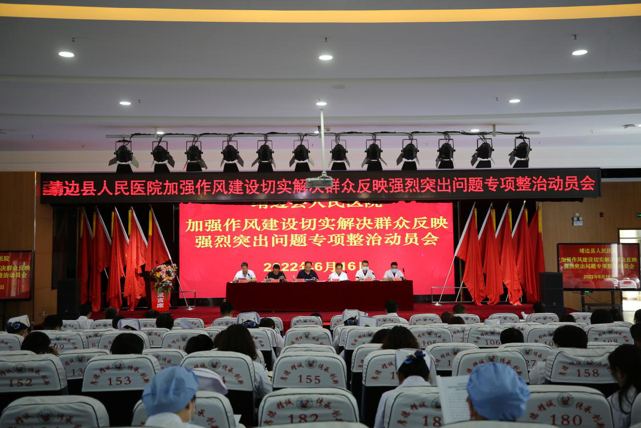 党委书记、院长马枭今作了动员部署讲话,今年以来,上级部门先后出台了多个关于作风建设方面的专项整治指导文件,如《省卫健委医疗领域作风建设专项整治》《县纪委2022年加强作风建设切实解决群众反映强烈突出问题的实施办法》等,6月6日,国家卫健委又出台了《2022年纠正医药购销领域和医疗服务中不正之风工作要点》,根据中省市县有关作风建设工作的安排部署,我院出台了《靖边县人民医院加强作风建设切实解决群众反映强烈突出问题专项整治工作方案》。就做好此次专项整治活动,他强调了四点: