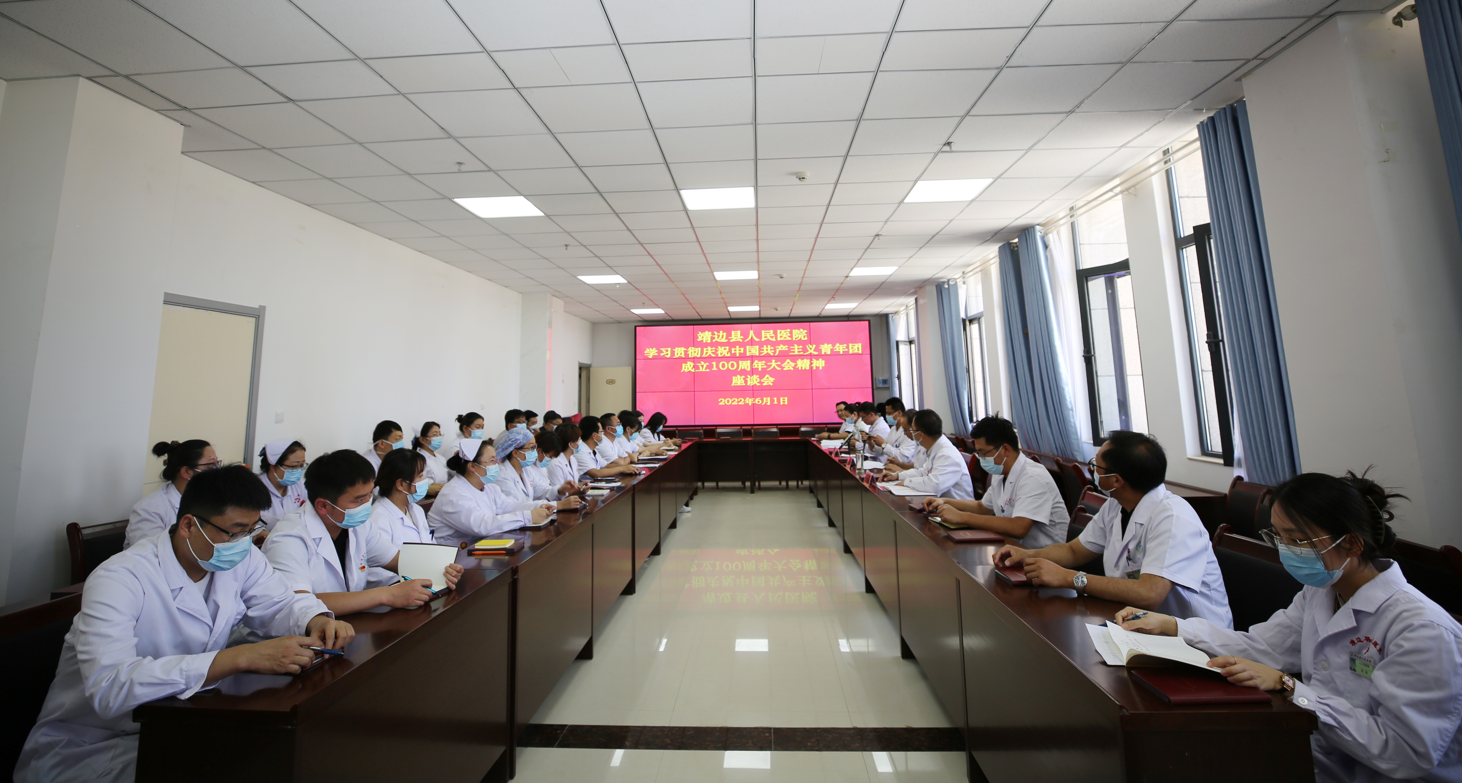 为庆祝中国共产主义青年团成立100周年,2022年6月1日,我院团委在行政楼四楼会议室举行学习习近平总书记在庆祝中国共产主义青年团成立100周年大会讲话精神座谈会。党委书记、院长马枭今,院长助理白治东,团委书记张涛,团委委员及部分青年代表参加会议。会议由团委书记张涛主持。