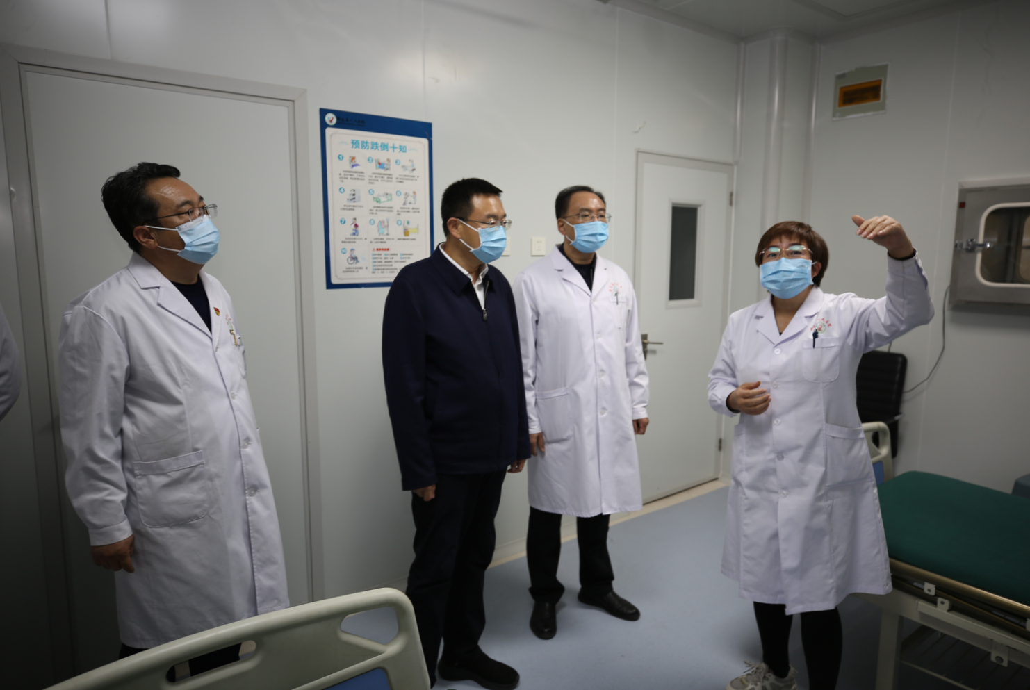 2022年11月15日,我县县委副书记、县政府县长曹龙莅临我院督导检查发热门诊及隔离病区运行情况。我院党委书记、院长马枭今、副院长王雄及相关科室负责人陪同检查。