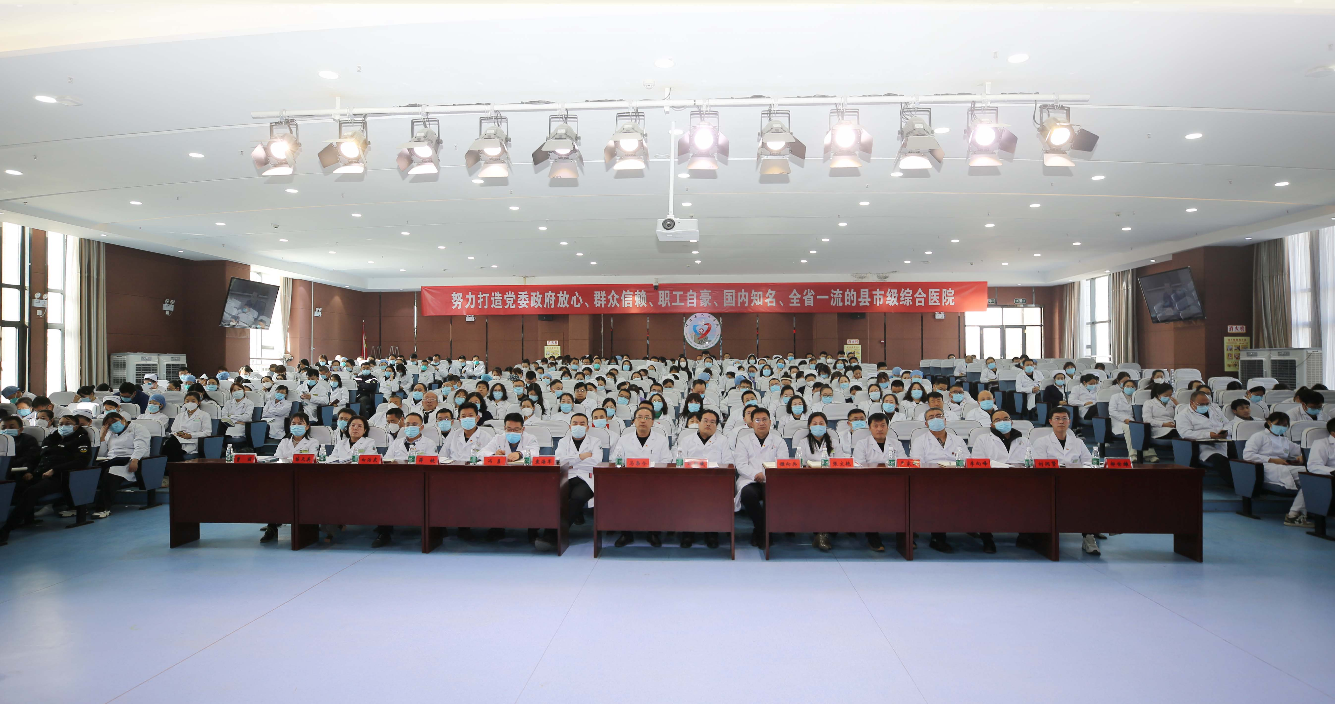 2023年2月10日下午,我院在行政楼二楼会议中心召开2022年度工作总结暨表彰大会。县卫健局考核组组长王永军、我院领导班子全体成员、中层及管理干部、受表彰的先进工作者、职工代表及党员代表、托管帮扶乡镇卫生院负责人代表参加会议,会议由党委副书记刘朝曦主持。