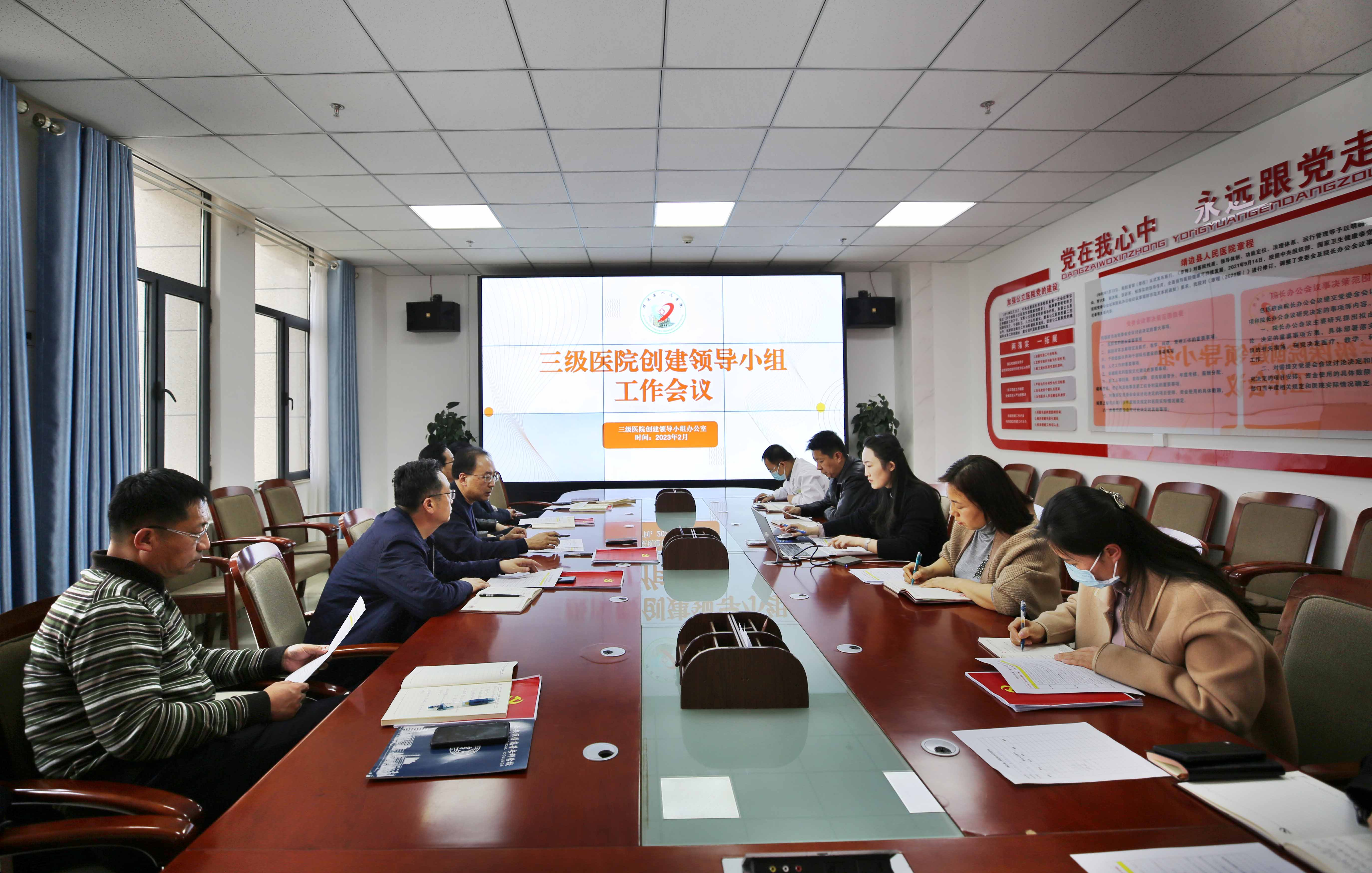 2023年2月23日,我院召开三级医院创建领导小组专题会议,会议由党委书记、院长马枭今主持,领导小组成员参加会议。会上,讨论修订了《三级医院创建目标及工作安排》,并对三级医院工作任务按季度进行了安排部署。第一季度完善各项制度和预案的修订,根据创建任务分解和责任清单进行一次全面自查,并邀请三级医院评审专家来院培训指导创建工作。第二季度全面梳理第一季度存在的问题,制订计划和整改时限,加强各级各类应急预案的演练,三基三严的培训考核做到人人达标。第三季度自评达标后,向市卫健委提出申请进行初审。第四季度迎接省级现场评审。会议要求,各部门各科室细化医院各项制度和各类预案,并结合工作实际及时予以修订。各工作组对标学习贯彻落实,全院各科室要按照《三级医院评审标准(2022版)》《三级医院评审标准实施细则(2022版)》标准执行,推进三级医院创建工作有序进行。