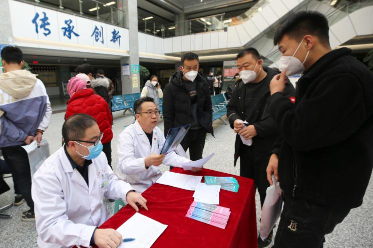 2023年2月4日,是“世界抗癌日”,我院肿瘤科在一楼门诊大厅开展义诊活动。活动现场,许多群众驻足咨询或索取相关宣传资料,我院肿瘤科医护人员针对各类肿瘤的预防常识向前来咨询的群众进行现场讲解;肿瘤科护士为前来义诊的群众免费测量血糖和血压并发放小礼品。