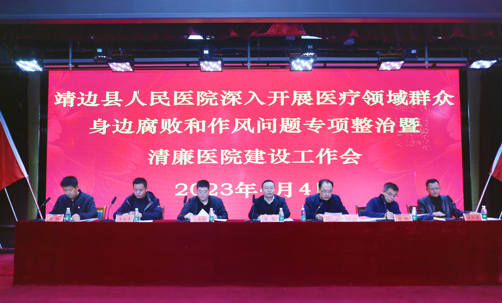 2023年4月4日,我院召开医疗领域群众身边腐败和作风问题专项整治暨清廉医院建设工作会。县纪委监委一级主任科员张宏,县纪委监委派驻县卫健局纪检监察组组长刘学林、县卫健局党组成员王永军、县医保局副局长刘鹏、县市场监管局总药剂师汪学军出席会议;我院党政领导班子成员、全体中层管理干部、纪委委员和党员参加会议,党委书记、院长马枭今主持会议。