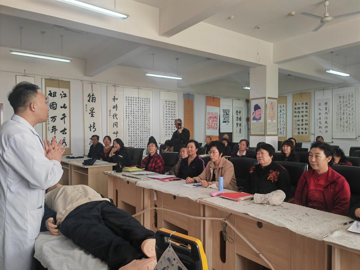 医务人员通过对“模拟人”实施心脏复苏抢救操作进行演示,包括判断是否丧失意识、有无自主呼吸、有无脉搏,进行胸外心脏按压、开放气道、人工呼吸等操作要领的示范。鼓励把这项急救技能推广到每一位人身边,掌握医学急救知识。手把手教学演示。细致的讲解配合专业的示范,极大的增加了大家学习急救知识的兴趣和动手能力。
