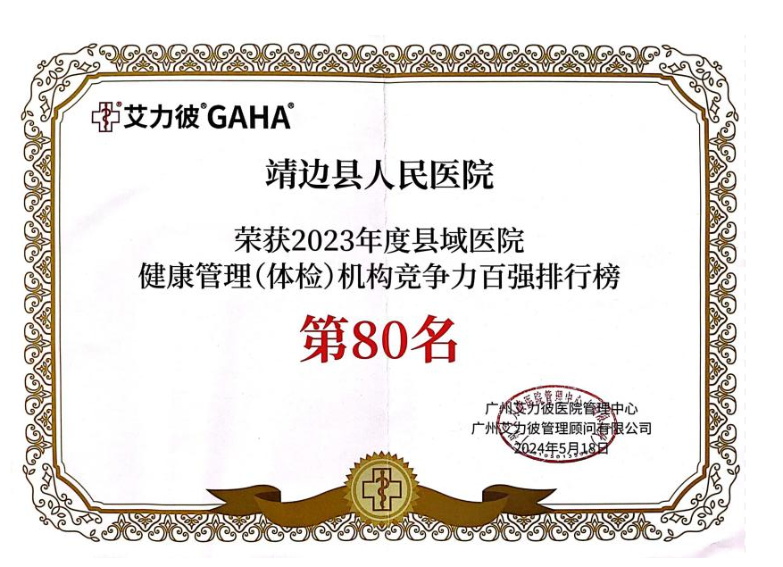 我院健康管理中心,荣获2023年度县域医院健康管理(体检)机构竞争力百强排行榜第80名。