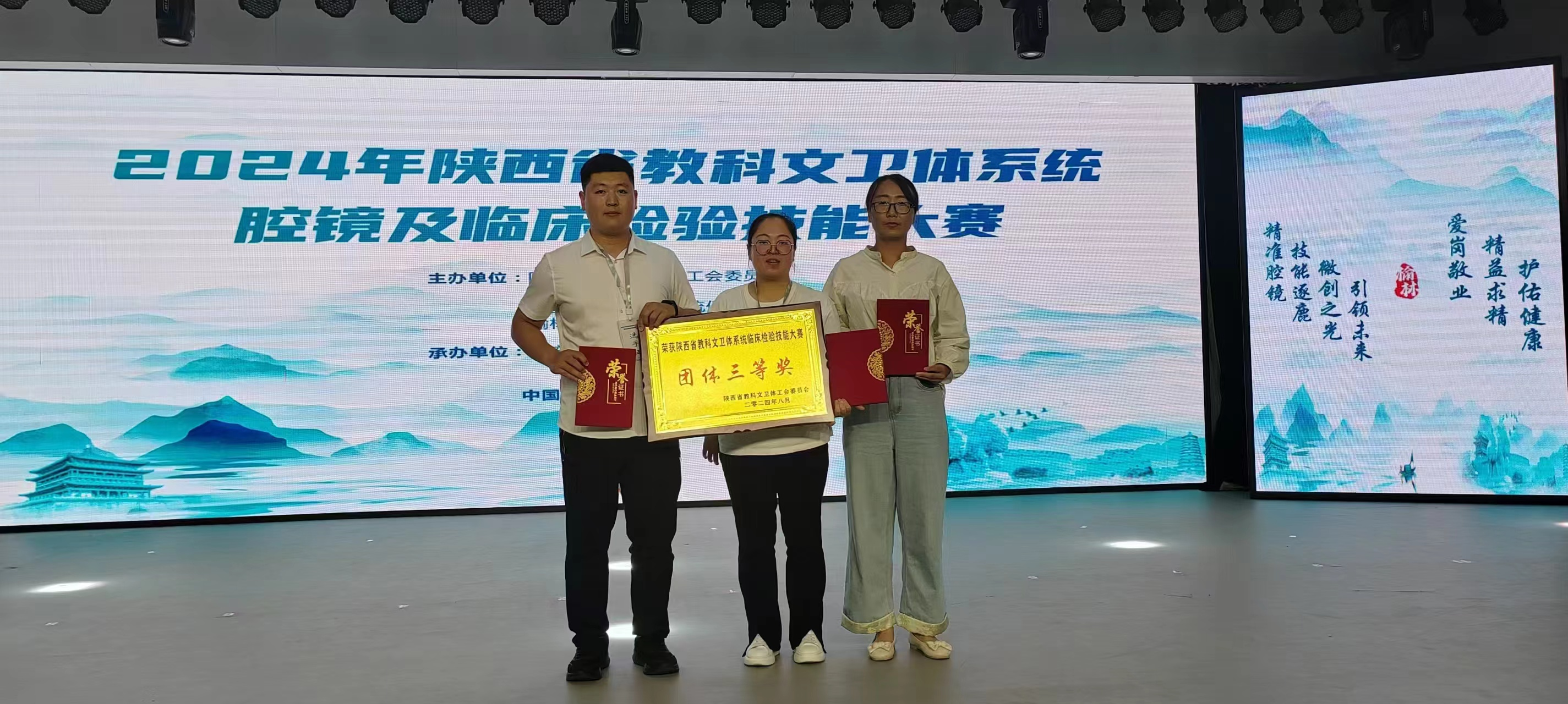 2024年8月20日,榆林市护理质量改善案例大赛在榆林市第一医院绥德院区成功举办,此次比赛由榆林市卫生健康委员会主办,榆林市第一医院承办。我院派出孙秀娥、曹华、高海华、丁朵朵四人代表医院参加比赛,由护理部主任孙秀娥带队,并在比赛中荣获团体三等奖和个人三等奖。