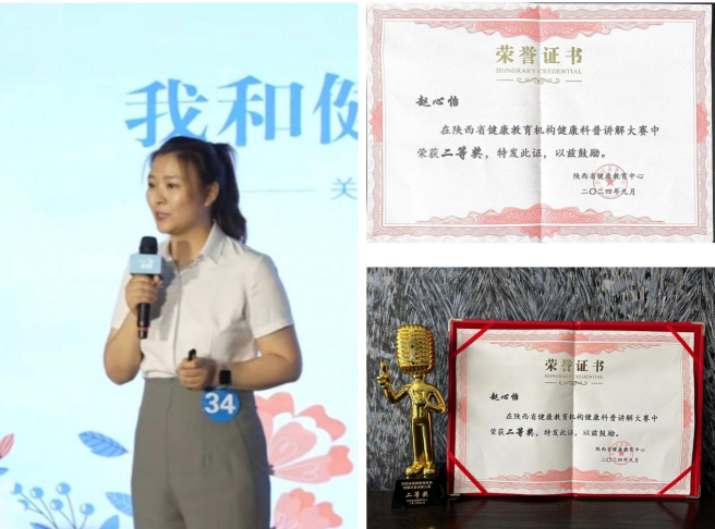 2024年9月13日,陕西省健康科普讲解大赛在西安举办,我院选手冯伟琴、赵心怡在此次比赛中表现卓越,分别荣获个人一等奖和二等奖。