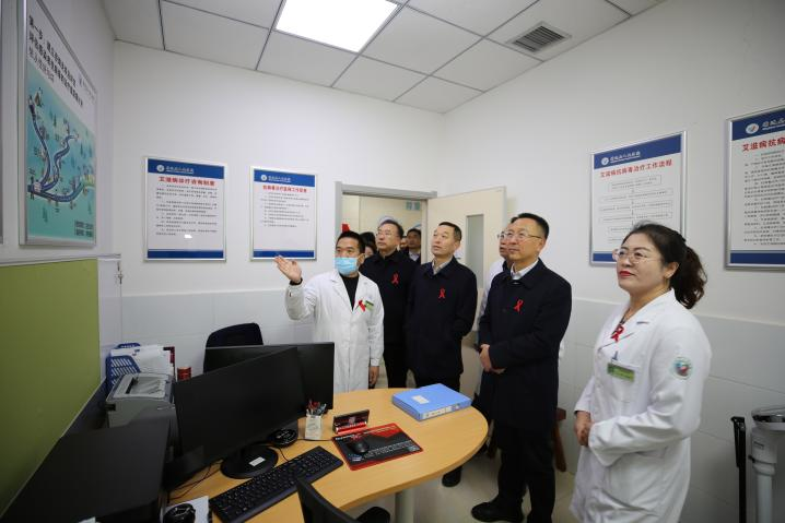 (要闻1)榆林市卫健委副主任薛兵胜一行莅临我院检查指导艾滋病防治工作