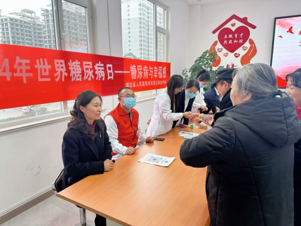 义诊活动内容包括血糖、血压测量,健康咨询,以及由专家提供的个性化预防和治疗建议。义诊结束后,我院河东院区综合内科医生开展糖尿病健康知识讲解。