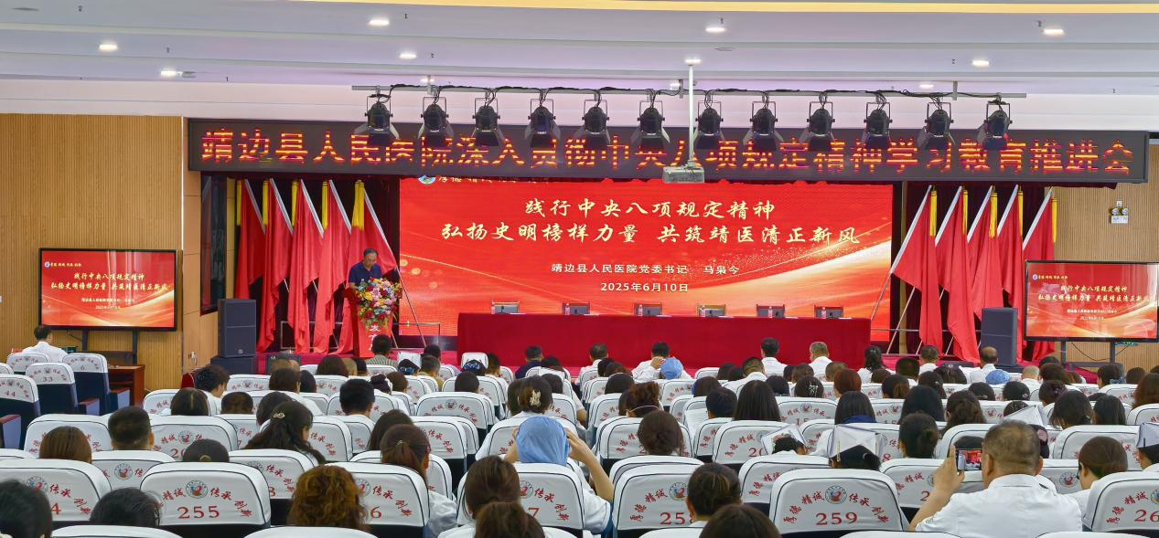 会议宣讲了医疗领域身边榜样的先进事迹,号召全院党员及干部职工学习史明同志“敬业、爱岗、无私、奉献”的精神。会议部署了下一阶段自查整改重点,严禁违规吃喝、严禁收受红包礼金、严禁违规操办婚丧嫁娶等行为,要求干部职工深入贯彻中央八项规定精神,认真落实“六个多”服务,强化学科建设,把学习教育成果转化为提升医疗质量、提高服务水平的实效。全院要以此次学习教育为契机,学习身边榜样,建设风清气正、医术精湛的医疗队伍,为健康靖边建设贡献靖医人力量!”