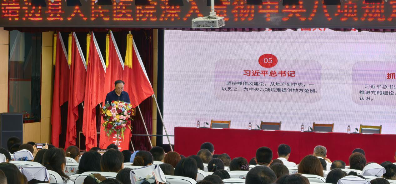 会上,党委书记院长马枭今在党课中系统阐述了中央八项规定精神学习教育的重要意义和必要性。党的十八大以来,以习近平同志为核心的党中央,以制定和落实中央八项规定为突破口,狠抓党员干部作风建设。从2013年截至当前,已开展和正在开展的集中学习教育有8次,并且每次学习教育都将作风建设作为一个重要内容贯穿其中。以2024年全国查处违反中央八项规定问题典型案例,强调作风问题关乎党的执政根基。结合医院作为县域医共体总院的定位,提出将学习成果转化为深化医改、提升服务能力的实际行动。