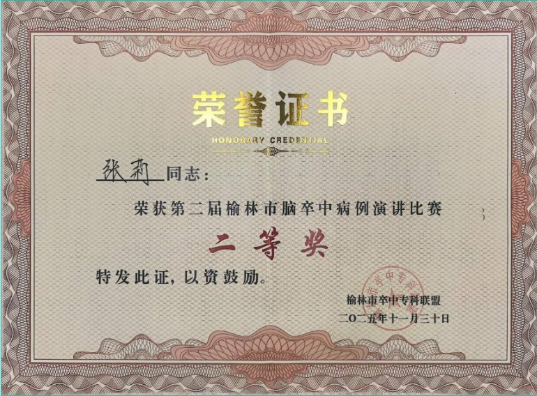 (要闻7)医院张莉荣获榆林市第二届脑卒中病例演讲比赛二等奖