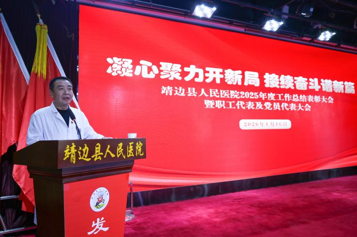 2026年1月16日,我院隆重召开2025年度工作总结表彰大会暨2026年第一次职工代表及党员代表大会。会议旨在全面总结过去一年工作,表彰先进典型,共商新一年发展大计。医院党政班子全体成员、中层管理干部、部分乡镇卫生院院长、受表彰的先进工作者及职工代表、党员代表齐聚一堂。会议由党委书记袁海军主持。