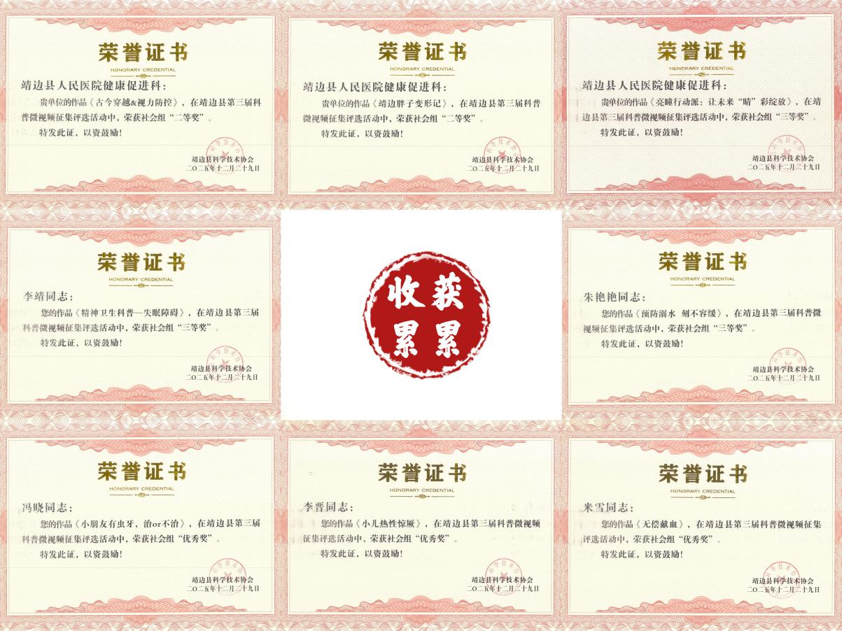 2025年,我院分别在“亮瞳杯”、“健康陕西科普能力提升在行动”及我县第三届优秀科普微视频征集评选中,接连斩获佳绩。